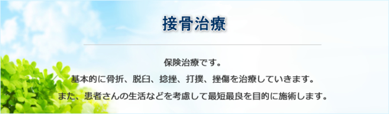 ~ 整骨院・鍼灸院をとおして健康な生活を ~ ふじた整骨院・鍼灸院にお任せください! 【 その痛みがなくなれば 何がしたいですか? 】 整骨院・鍼灸院をとおして健康に生活をしていただきたく、いろいろとご相談を受け付けております。 交通事故による怪我やスポーツ外傷を得意としており、交通事故の患者さんは地域でもトップクラスだと思います! ゴルフ・テニス・陸上・バレーボール等の体幹コンディショニング・筋肉のケア等も行っております。 各種はり治療・お灸・ウォーターマッサージベッド完備。 バンキー療法(吸い玉)・ダイエット指導・ふじた式メディカルリフトアップ(小顔矯正)等ご相談ください。 【 交通事故・むちうち治療 】 交通事故後の痛みを予測し、事前に対処することで治療効果を高めます。 実は事故に遭ってスグには痛みが出ていないで、3日前後であちこちに痛みや違和感が出てくる事が多いのです。 受傷後の早い段階で来院された場合、今後痛みが出てくるであろう部位を予測し、お伝えすると、多くの患者様が驚かれます。 交通事故は、瞬間的に相当な外力が体に加わりますので、スポーツや日常生活での怪我と比較して、筋肉や関節の損傷の度合いが大きくなります。 事故の状況を詳細にお聞きし、受傷時の体勢をイメージし、どの筋肉・どの関節に、どの方向から外力が加わったかをイメージする事で痛みの出る場所を予測する事が可能なのです。このイメージすると言う事が、治療効果をUPさせる為に必ず必要な事なのです! その他、慰謝料や他に加入されている傷害保険等につきましても、分かりやすく丁寧に説明いたしますのでご安心下さい!
